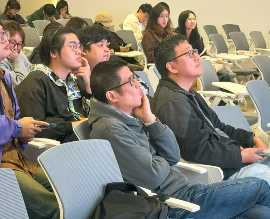 讲座中陈秋然先生也为同学们展示了通过运用AI技术扫描获得实景建筑、文物3D资产的案例,以及根据AI技术得以实现的设计展览。 会议最后,陈老师与同学们积极互动,为同学们解疑答惑。在总结时。陈秋然老师认为未来AI技术发展方向是实时AI渲染、跨膜型创作(文本/图像/3D无缝转换),以此来实现创作工具的普惠化,并鼓励同学们积极参与Siggraph赛事,以技术拓展艺术边界。